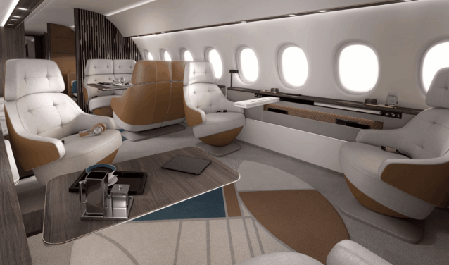 - Inovador: A principal inovação dessa aeronave está em sua capacidade de oferecer várias configurações de layout interno. O layout do Falcon 10X é particularmente adequado às necessidades dos viajantes a negócios, oferecendo flexibilidade excepcional para atender às exigências específicas dos passageiros.