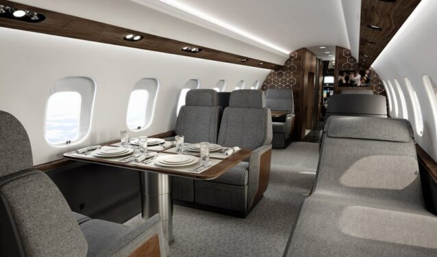 La cabine du Global 6500 est doté d’une cuisine complète incluant de nouveaux comptoirs, un four à vapeur et d’autres appareils électroménagers haut de gamme.